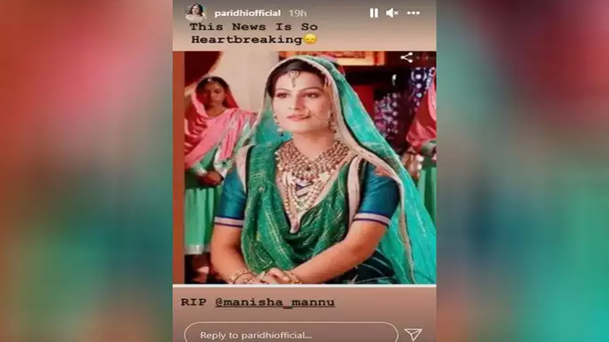 बता दें कि, उनकी को स्टार परिधि शर्मा ने इस दुखद खबर पुष्टि की। परिधि शर्मा ने अपने इंस्टाग्राम अकाउंट की स्टोरी पर मनीषा यादव की तस्वीर शेयर कर लिखा, ‘ये खबर दिल तोड़ने वाली है। आरआईपी मनीषा यादव।’