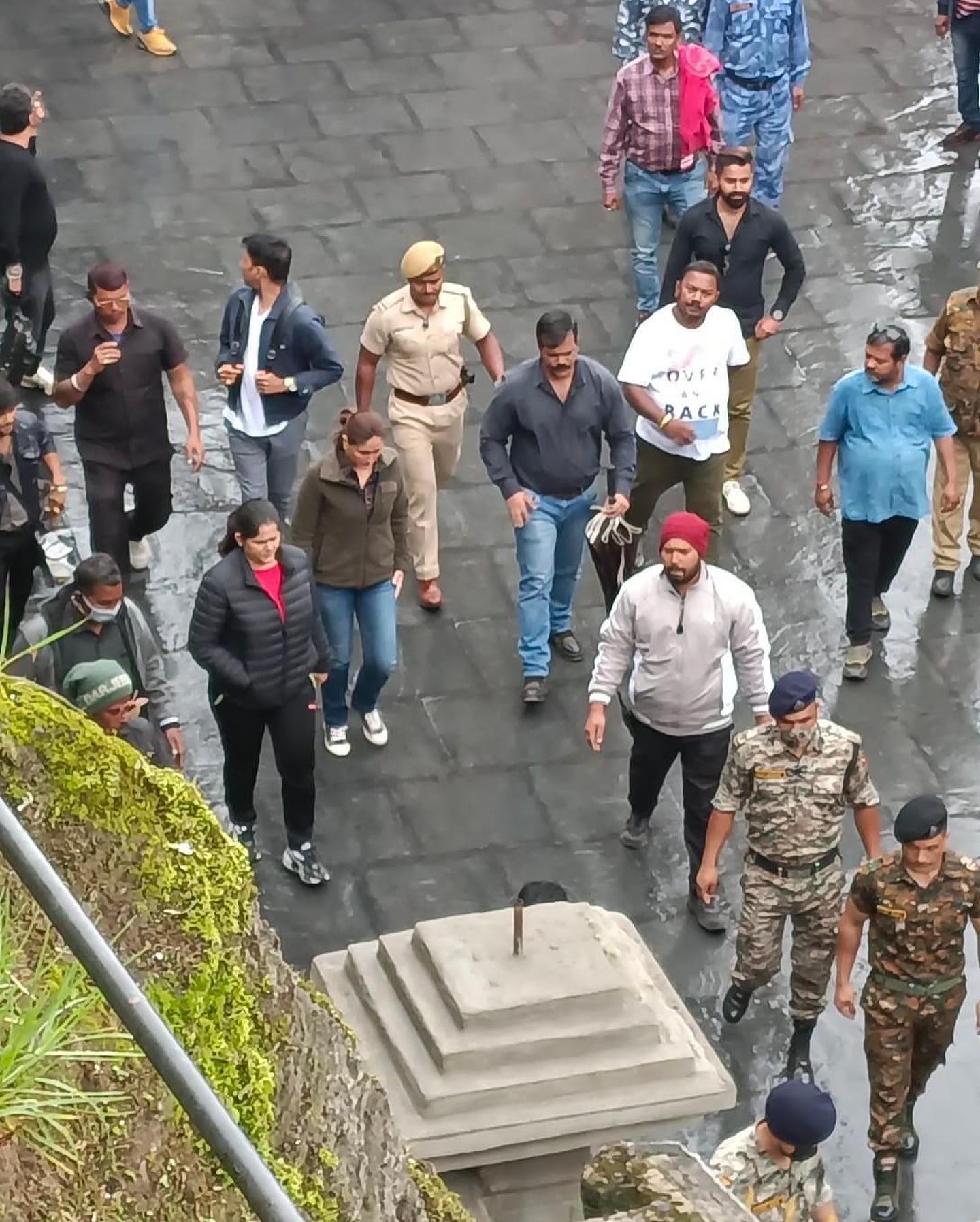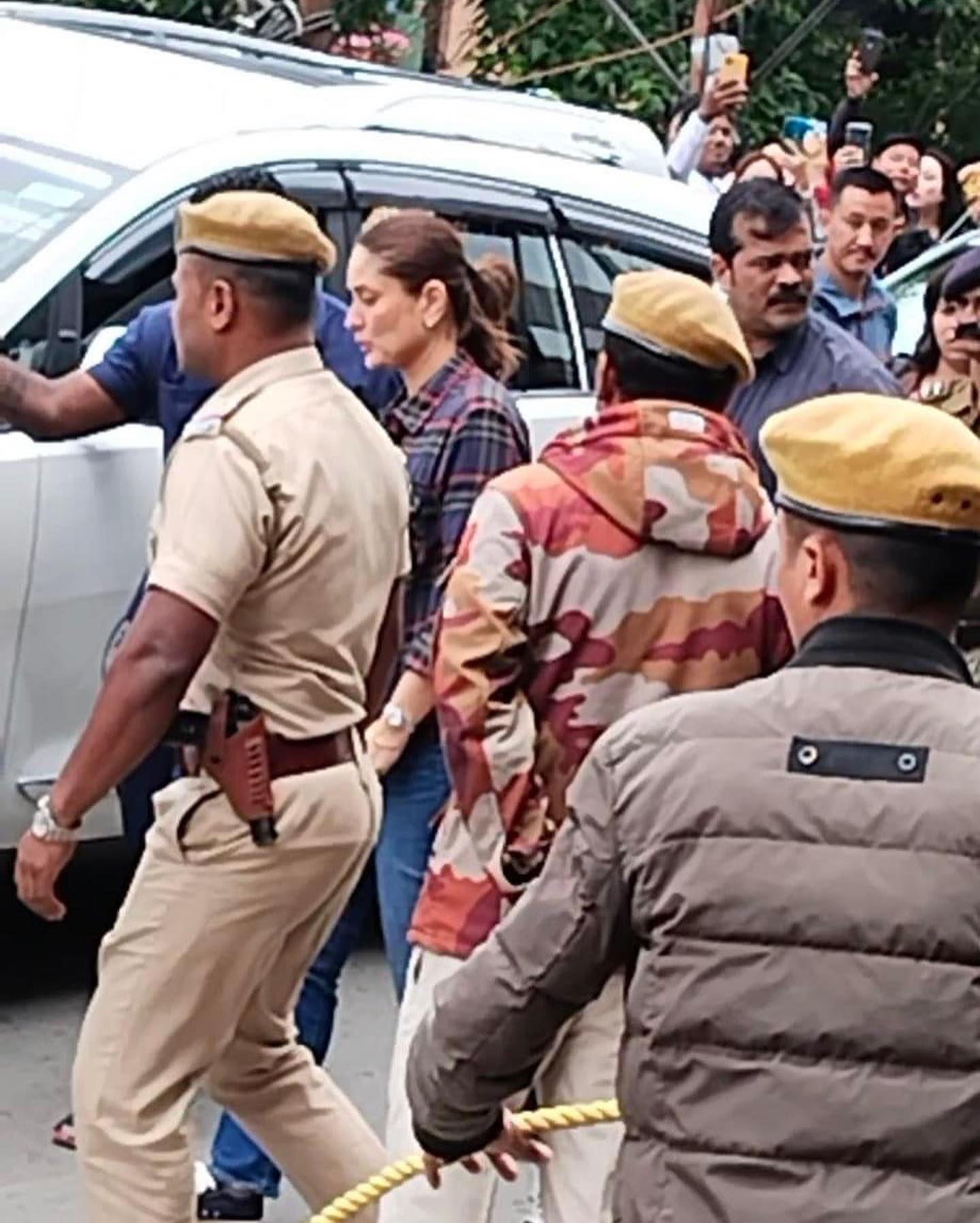 मुंबई: बॉलीवुड अभिनेत्री करीना कपूर खान (Bollywood actress Kareena Kapoor Khan) इन दिनों दार्जिलिंग में अपनी आगामी फिल्म ‘द डिवोशन ऑफ सस्पेक्ट एक्स’ (The Devotion of Suspect X) की शूटिंग में व्यस्त है। इस दौरान उनके साथ अभिनेता विजय वर्मा और निर्देशक सुजॉय घोष भी दिखाई दे रहे है। दार्जिलिंग में ‘द डिवोशन ऑफ सस्पेक्ट एक्स’ की टीम अहम सीन की शूटिंग करते नजर आए। शूटिंग से जुड़ी कुछ तस्वीरें सोशल मीडिया पर तेजी से वायरल हो रही हैं। आप तस्वीरों में देख सकते है कि टीम पूरी तरह से बाउंसर की सुरक्षा में है। अभिनेत्री को एक छतरी के नीचे खड़े होकर प्रशंसकों का हाथ हिलाते हुए देखा गया। देखें तस्वीरें-