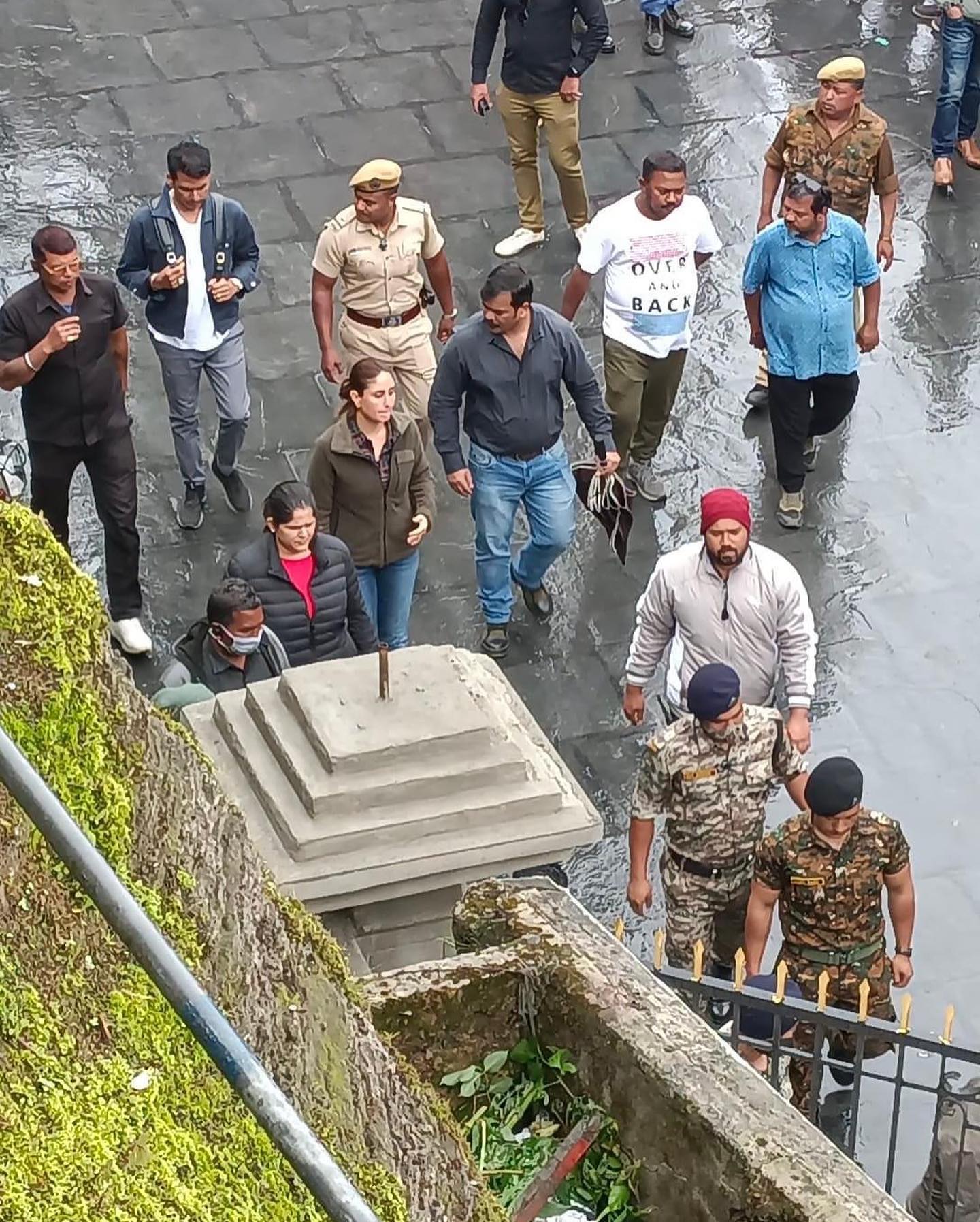मुंबई: बॉलीवुड अभिनेत्री करीना कपूर खान (Bollywood actress Kareena Kapoor Khan) इन दिनों दार्जिलिंग में अपनी आगामी फिल्म 'द डिवोशन ऑफ सस्पेक्ट एक्स' (The Devotion of Suspect X) की शूटिंग में व्यस्त है। इस दौरान उनके साथ अभिनेता विजय वर्मा और निर्देशक सुजॉय घोष भी दिखाई दे रहे है। दार्जिलिंग में 'द डिवोशन ऑफ सस्पेक्ट एक्स' की टीम अहम सीन की शूटिंग करते नजर आए। शूटिंग से जुड़ी कुछ तस्वीरें सोशल मीडिया पर तेजी से वायरल हो रही हैं। आप तस्वीरों में देख सकते है कि टीम पूरी तरह से बाउंसर की सुरक्षा में है। अभिनेत्री को एक छतरी के नीचे खड़े होकर प्रशंसकों का हाथ हिलाते हुए देखा गया। देखें तस्वीरें-