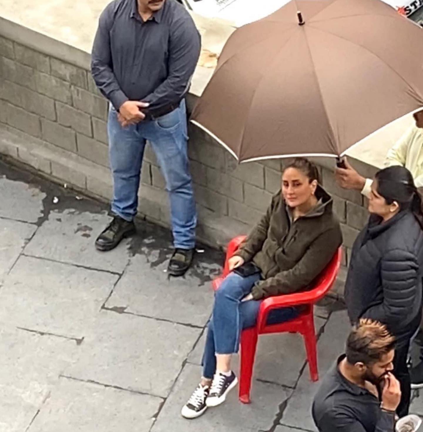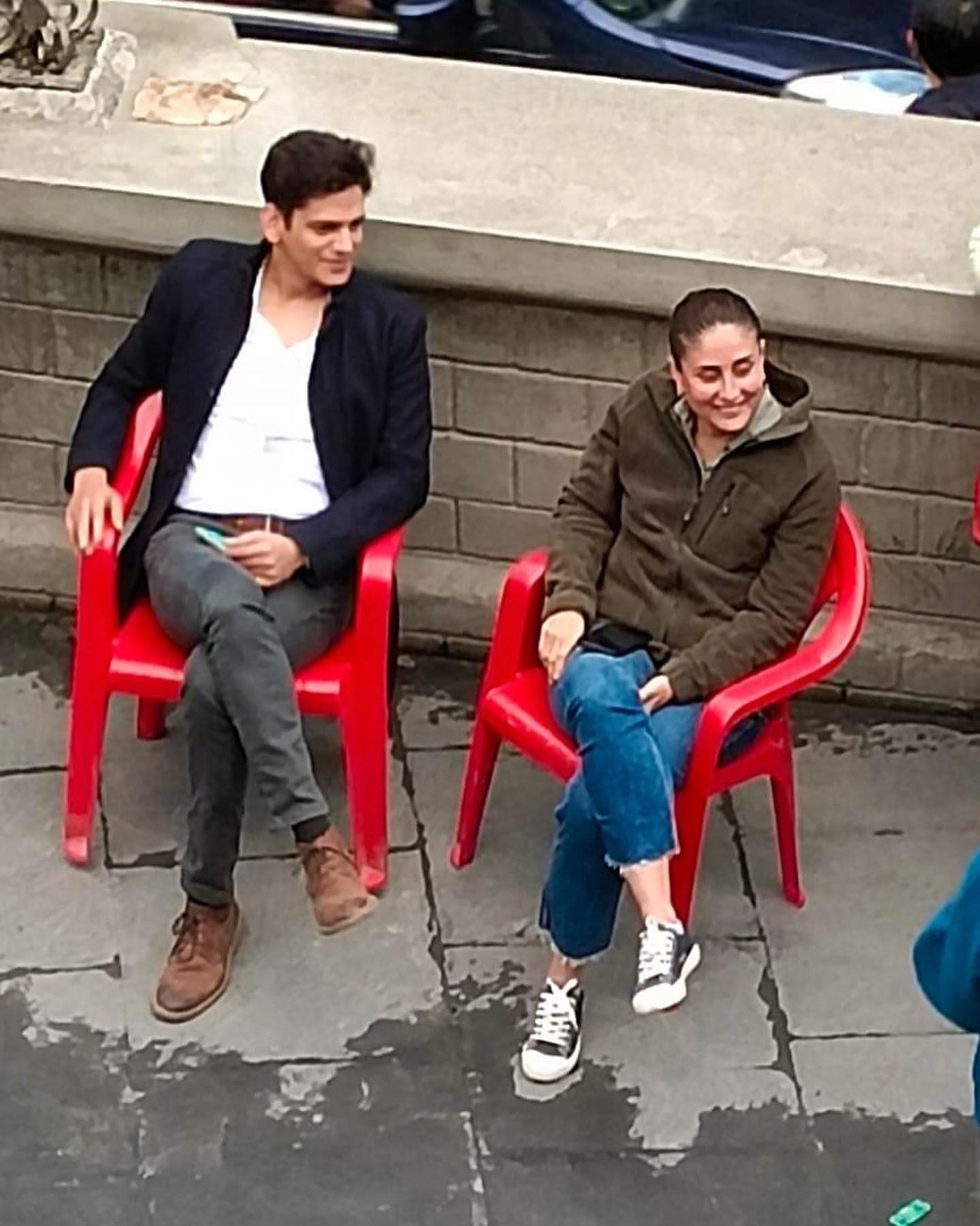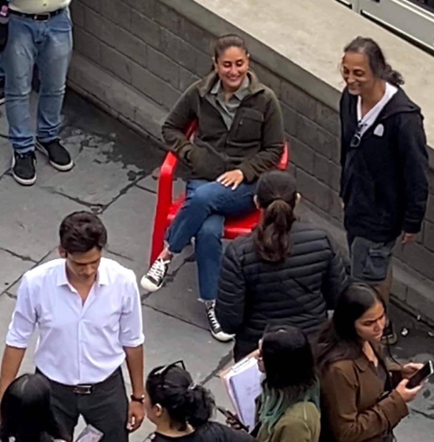 प्रशंसक तस्वीरों के एक अन्य सेट में, करीना और उनके सह-कलाकार विजय वर्मा को कुर्सियों पर बैठे और बातचीत करते हुए देखा गया क्योंकि उनका शॉट तैयार किया जा रहा था।