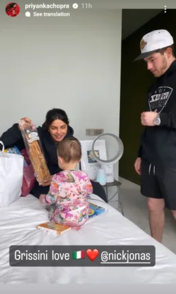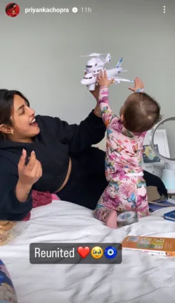 हाल ही में एक्ट्रेस ने अपने इंस्टाग्राम स्टोरी पर दो तस्वीरें शेयर की हैं। जिसमें वो अपने हबी निक जोनास और अपनी लाडली मालती के साथ क्वालिटी टाइम एन्जॉय करती नजर आ रही हैं। पहली तस्वीर में प्रियंका अपने हाथ में हवाई जहाज का खिलौना लिए नजर आ रही हैं। जिसे मालती पकड़ने की कोशिश करती दिखाई दे रही हैं।