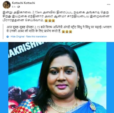 - Tamil Actress Sindhu Passes Away At The Age Of 44