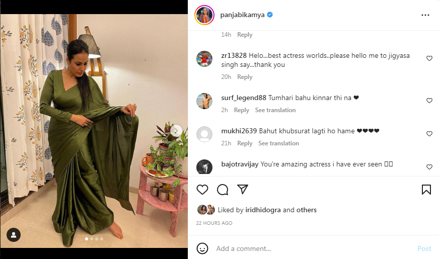 - Wearing A Plain Green Sari Sanjog Fame Kamya Punjabi Created A Furore See The Killer Look Fans Are Making These Comments