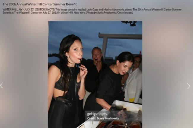 वेबसाइट के मुताबिक, 27 जुलाई 2013 की यह तस्वीर न्यूयॉर्क के वॉटर मिल में हुए “वॉटरमिल सेंटर समर बेनिफिट” कार्यक्रम की है। वहीं, तस्वीर में फेमस अमेरिकन सिंगर लेडी गागा और एक्ट्रेस मरीना अब्रामोविच दिख रहीं है।