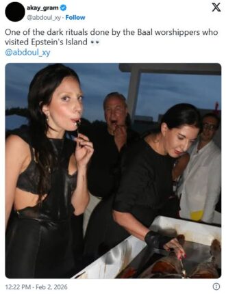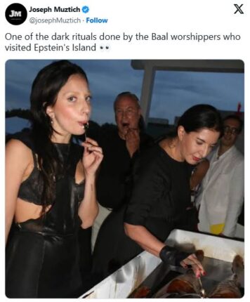 फोटो शेयर कर यूजर्स ने लिखा- एपस्टीन आइलैंड पर जाने वाले लोग काले और डरावने रिवाज से शैतान की पूजा करते थे। इस तस्वीर को X पर कई यूजर्स ने इसी दावे के साथ शेयर किया।