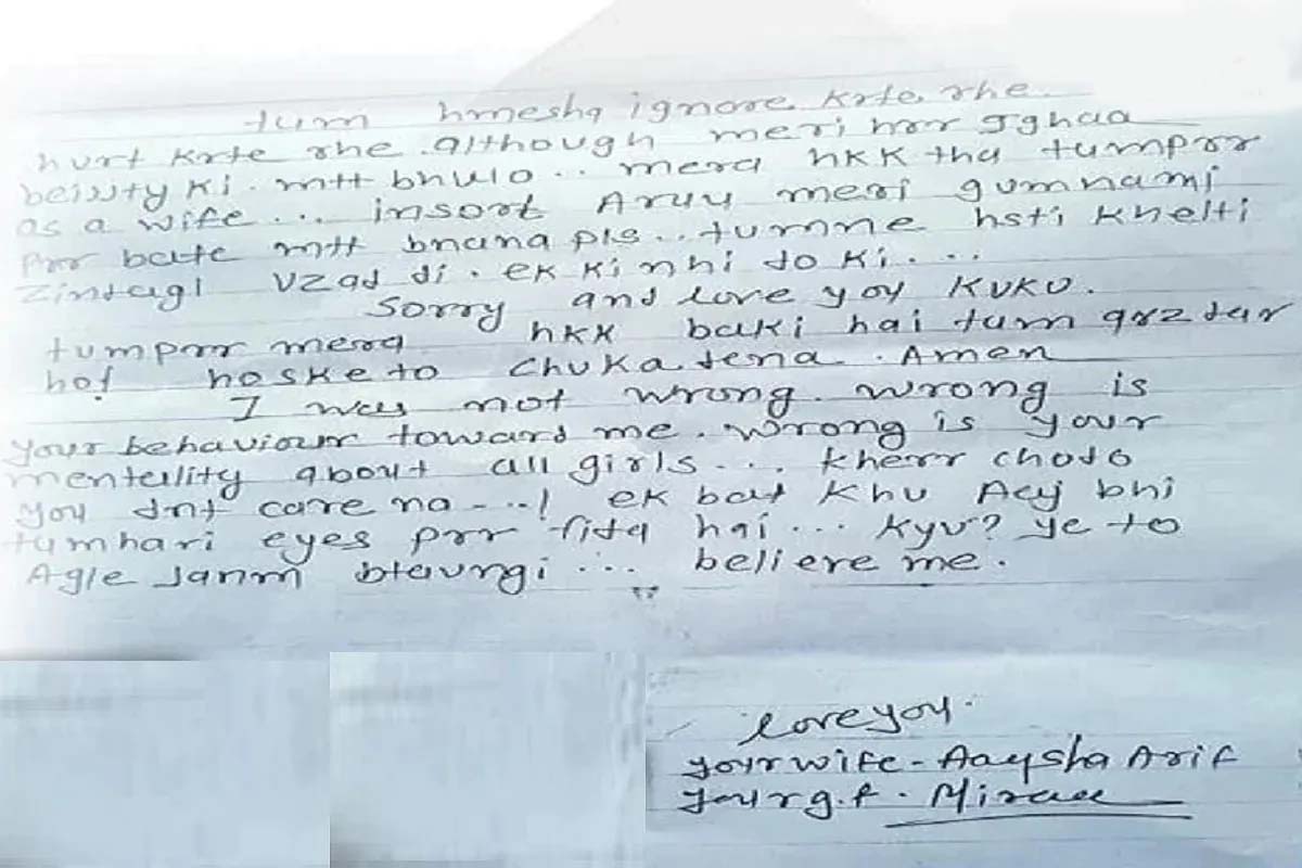 आयशा ने सुसाइड नोट में लिखा- आरिफ तुमने 2 जिंदगियां बर्बाद कर दीं