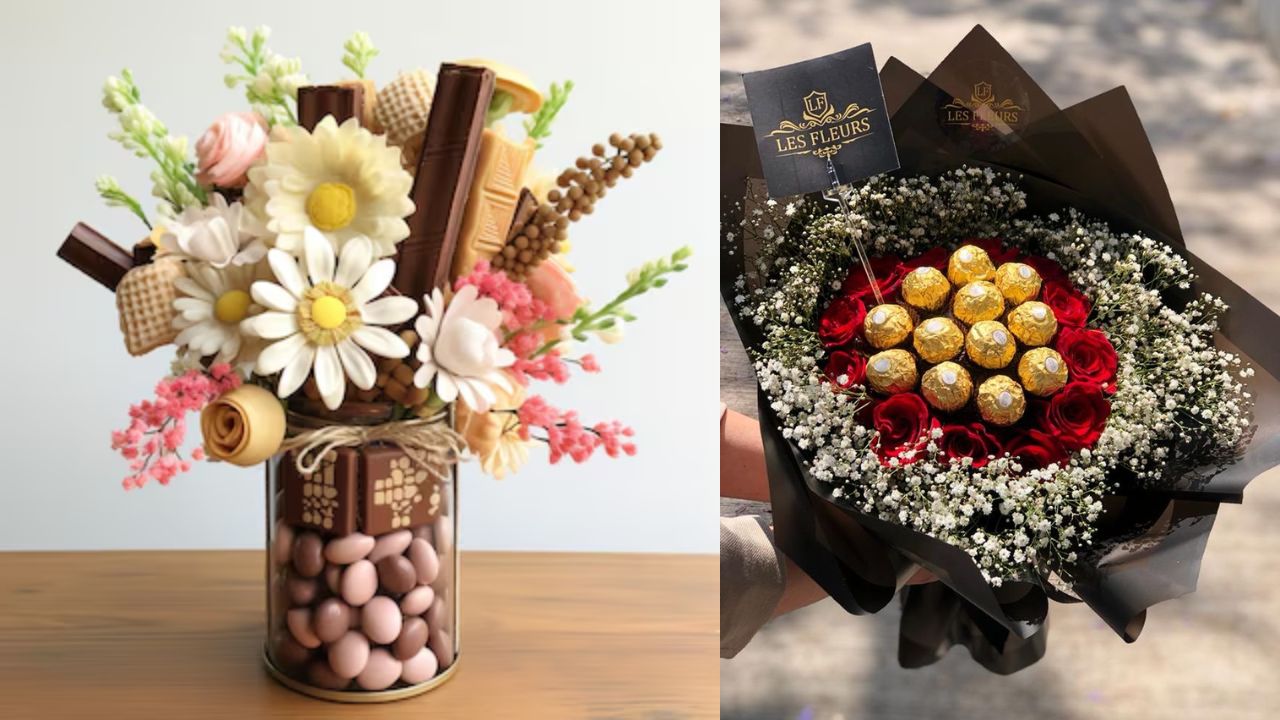 फूलों का बुके तो पुराना हो गया अब जमाना है चॉकलेट बुके का। इसमें फेरेरो रोचर, किटकैट या डेयरी मिल्क जैसी चॉकलेट्स को फूलों की तरह सजाया जाता है। यह दिखने में बहुत ही शानदार लगता है और इसे आप आसानी से ऑनलाइन ऑर्डर कर सकते हैं।