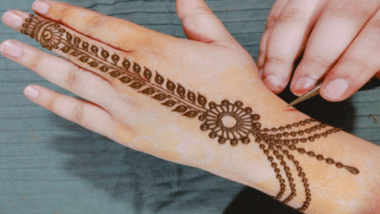 ऐसी बहुत सी महिलाये है जनके पास समय की कमी होती है। तो वह महिलाएं अपने हाथों में बेल डिज़ाइन वाली मेहंदी लगा सकती हैं। यह दिखने में जितनी सिंपल होती हैं उतनी ही खूबसूरत भी होती हैं।