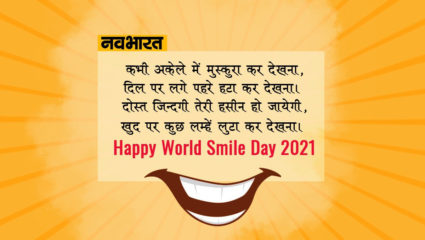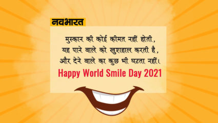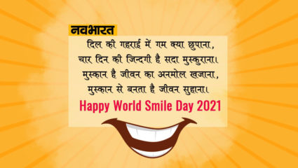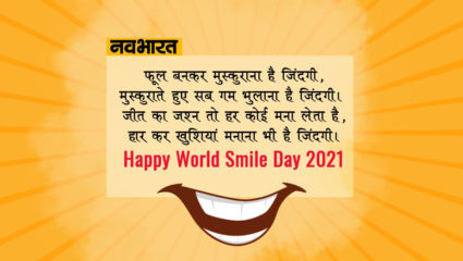 नई दिल्ली: खुशहाल जीवन (Happy Life) का एक मंत्र है, वो है आपकी हंसी (Laughter)। हंसने से हम शारीरिक रूप से सेहतमंद तो होते ही है, बल्कि मानसिक रूप से भी खुशी महसूस करते हैं। हर साल पूरी दुनिया में ‘विश्व मुस्कान दिवस’ (World Smile Day) अक्टूबर के पहले शुक्रवार को मनाया जाता है। ‘वर्ल्ड स्माइल डे’ के इस खास अवसर पर हम आपके लिए बधाई संदेश लेकर आएं हैं। इस मेसेजेस के जरिये आप अपने दोस्तों और रिश्तेदारों को बधाई दें।