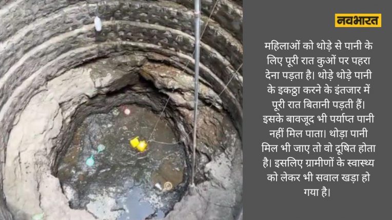 रातभर पहरा देने के बाद सूखे हुए कुएं से पानी निकालती महिलाएं