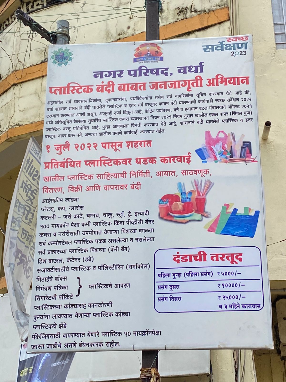 वर्धा. राज्य सरकार ने सिंगल यूज प्लास्टिक का उत्पादन, आयात, भंडारण, वितरण, बिक्री तथा उपयोग पर पाबंदी लगाई है़ नियमों का उल्लंघन करने वालों पर कार्रवाई करने के निर्देश दिए गए है़ इसके बावजूद प्लास्टिक का धड़ल्ले से उपयोग होते दिखाई दे रहा है़ नगर परिषद प्रशासन ने शहर में 17 अक्टूबर से प्लास्टिक बंदी मुहिम आरंभ की जानेवाली है.
