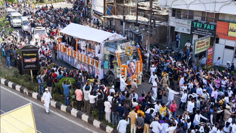 असम के तीन बार मुख्यमंत्री, दो बार केंद्रीय मंत्री और छह बार लोकसभा सदस्य रहे तरुण गोगोई का 84 साल की उम्र में सोमवार को निधन हो गया। वह कोविड-19 के बाद स्वास्थ्य संबंधी जटिलताओं से जूझ रहे थे। तरुण गोगोई के अंतिम संस्कार के पहले उनकी अंतिम इच्छा के मुताबिक पार्थिव शरीर को चर्च, नामघर, मस्जिद, मंदिर और बिहू आयोजन वाले एक मैदान में ले जाया गया। अंतिम यात्रा के दौरान फूलों से सजाए गए ट्रकों को कई स्थानों पर रूकना पड़ा क्योंकि अपने चहेते नेता को अंतिम विदाई देने के लिए लोग उन्हें श्रद्धांजलि देना चाहते थे।