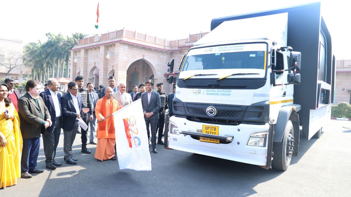 वसुधैव कुटुम्बकम के ध्येय वाक्य के साथ भारत में आयोजित हो रहे जी-20 सम्मेलन को लेकर उत्तर प्रदेश में तैयारियां जोरों पर हैं। प्रदेश में जी-20 से जुड़े कुल 11 समिट होंगे, जिनकी शुरुआत आगामी 10 फरवरी से आगरा से होने जा रही है। जी-20 सम्मेलन के जरिए प्रदेश के विकास सहित डिजिटल यूपी की तस्वीर भी विदेशी मेहमानों के सामने पेश की जाएगी। वहीं इससे पहले मुख्यमंत्री योगी आदित्यनाथ ने रविवार को अपने आवास पांच कालीदास मार्ग से जी-20 वैन को हरी झंडी दिखाकर रवाना किया। ‘सफर डिजिटल इंडिया का’ को प्रदर्शित करने वाली इस वैन में भारत में डिजिटल क्रांति की पूरी गाथा वीएफएक्स के माध्यम से देखने को मिलेगी। वैन के जरिए स्कूलों-कॉलेज और सार्वजनिक स्थानों पर लोगों को डिजिटल इंडिया की जानकारी दी जाएगी। इस अवसर पर मुख्य सचिव दुर्गाशंकर मिश्र, मंडलायुक्त रौशन जैकब, डीएम सूर्यपाल गंगवार भी मौजूद रहे।