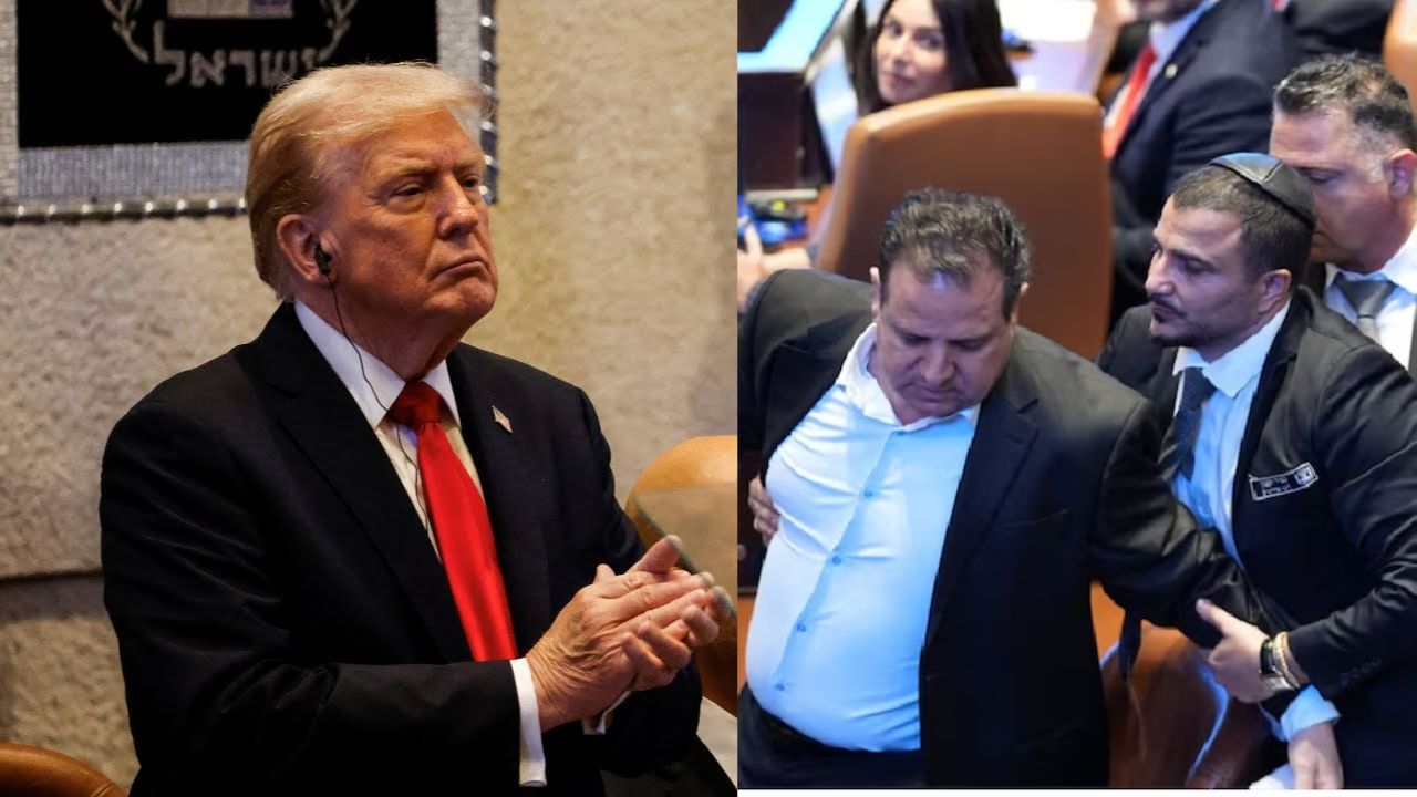 Trump in Israel: इजरायल के लिए आज का दिन किसी उत्सव से कम नहीं है। हमास के साथ दो साल से जारी जंग अंततः इजरायली बंधकों की रिहाई के साथ खत्म हो गई। इस जश्न में शामिल होने के लिए अमेरिकी राष्ट्रपति डोनाल्ड ट्रंप इजरायल पहुंचे, लेकिन इस दौरान उन्हें नारेबाज़ी और अपमान का सामना करना पड़ा।